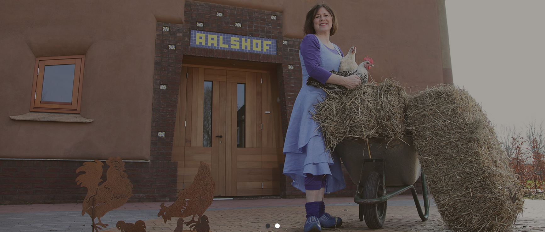 Langs de scharrelkippen in verrijdbare kooien. Vrij wandelen in de prachtig aangelegde tuin; toeven in de serre en (met mate !!!) proeven van vier soorten advocaat !!